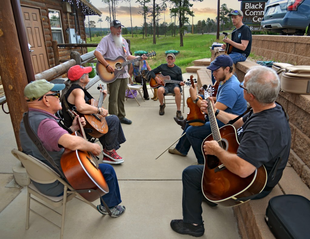 The sun is setting on the All Souls Unitarian Church as a handful of people trickle into the church lobby carrying an assortment of acoustic instruments. First walks in a banjo player, then fiddler, followed by a few guitar players and a mandolinist. It’s the monthly Black Rose Acoustic Society’s bluegrass jam which takes place every 4th Thursday evening in Colorado Springs, Colorado. Musicians of varying skill levels, ages, backgrounds and creeds gather to take part in the gathering and community embodiment of Americana music. As the musicians arrive, they begin tuning their instruments and collecting any essentials such as picks, bows and “cheat sheets” or tablature from their cases. The church lobby, which is ordained in religious motifs and high ceilings, is the ideal acoustic space for these musicians to showcase their talent and prowess.