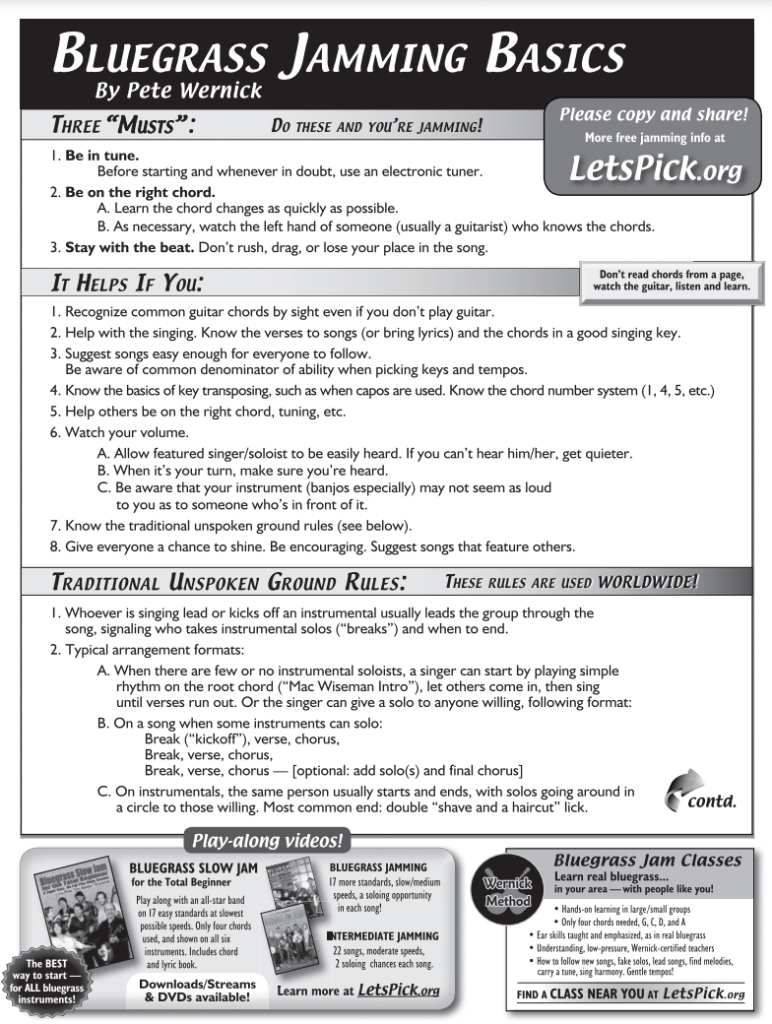 - Pete Wernick Website and Class Schedule